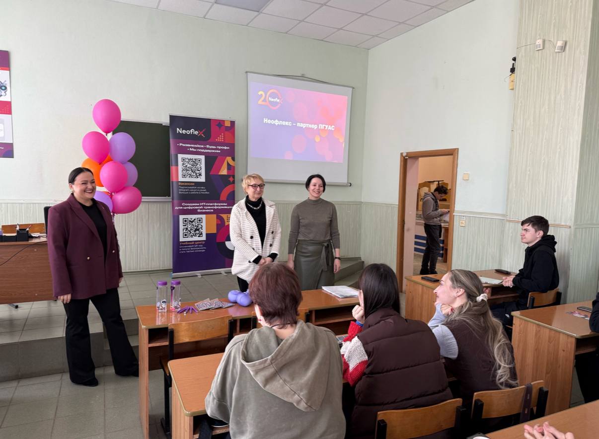 18 февраля 2026 года студенты IT направления института цифрового управления, декан института - Королева Лариса Александровна, заведующий кафедрой Литвинская Ольга Сергеевна и коллеги компании "Неофлекс"стали участниками открытия лекционной аудитории с обновленными тематическими стендами. Встреча с представителями компании, организованное в стенах университета, стало уникальной площадкой для диалога между будущими IT-специалистами и опытными профессионалами ведущей российской IT-компании.