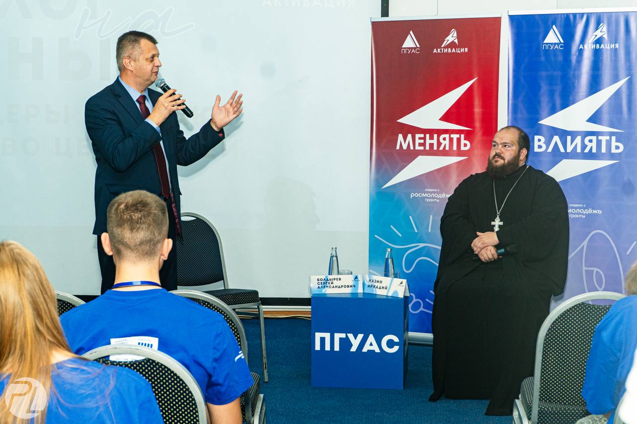 После открытия состоялся «Диалог на равных» с ректором университета и священником Аркадием Назиным, иереем храма Св. Мученицы Татьяны при ПГУАС, заместителем руководителя отдела по делам молодёжи Пензенской епархии.
