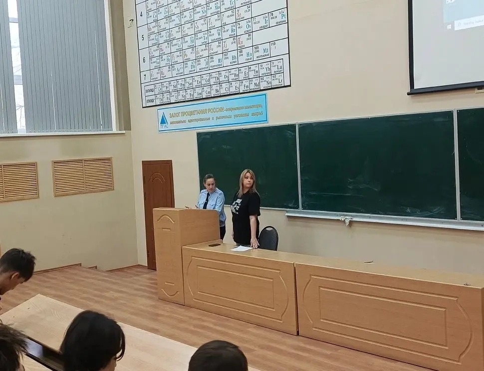 Дружная команда преподавателей кафедры «ГДС» — Нелли Ивановна Тарасеева и Юлия Вячеславовна Грачева — вместе со своими курируемыми группами 25СТ24 и 25СТ14 пришли заряжать атмосферу аплодисментами.